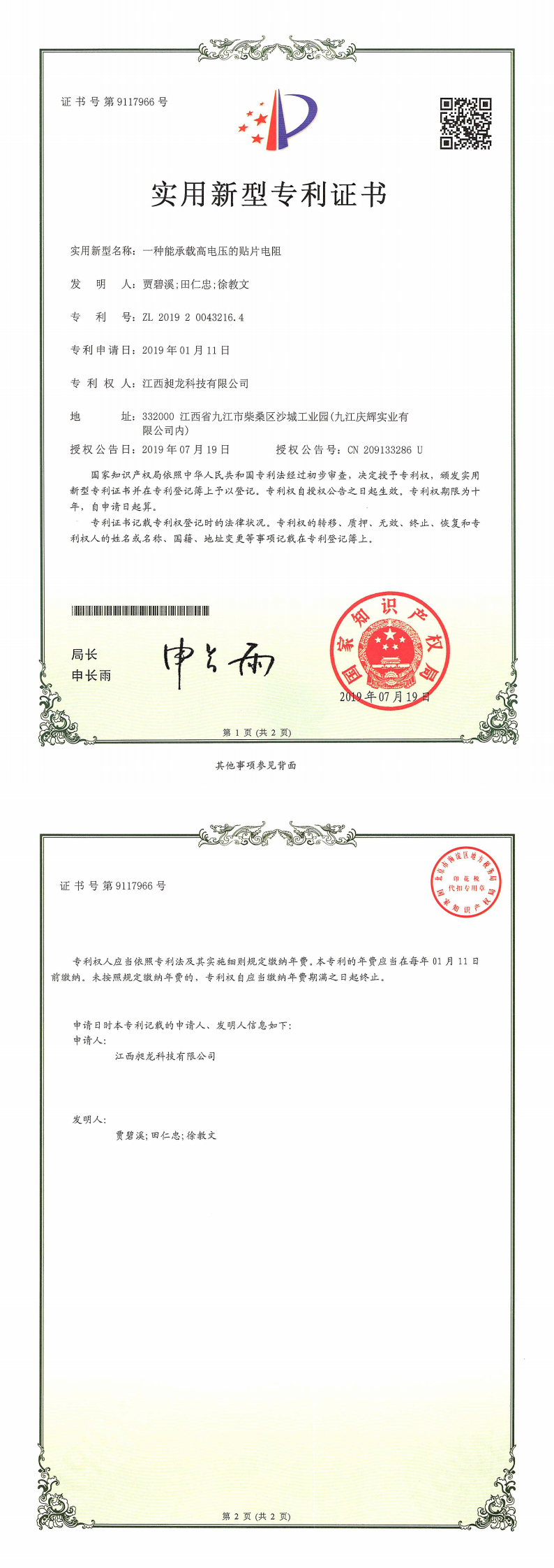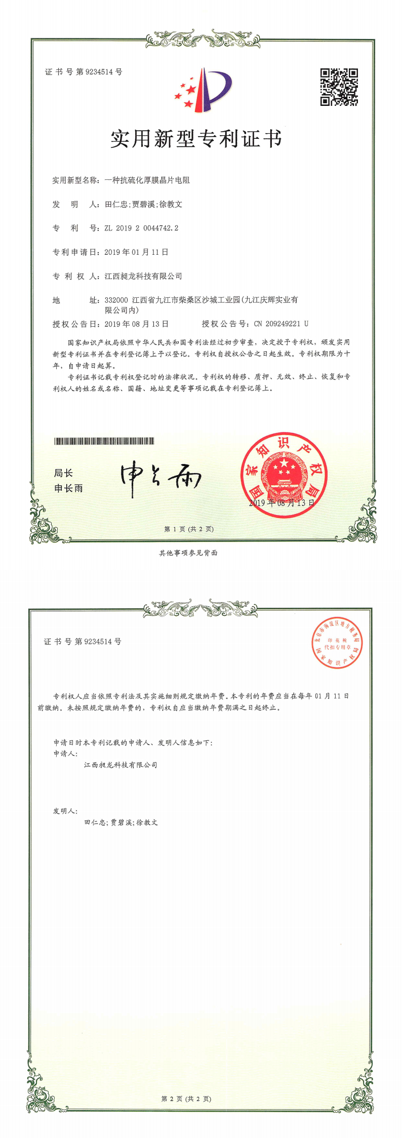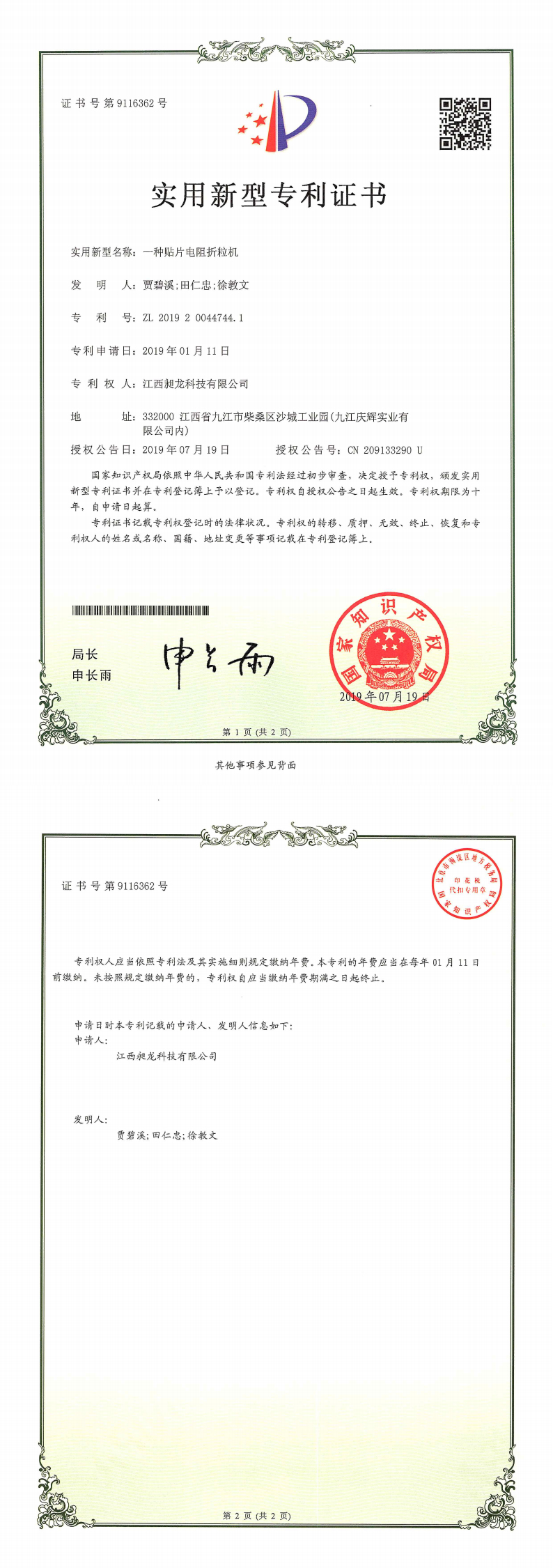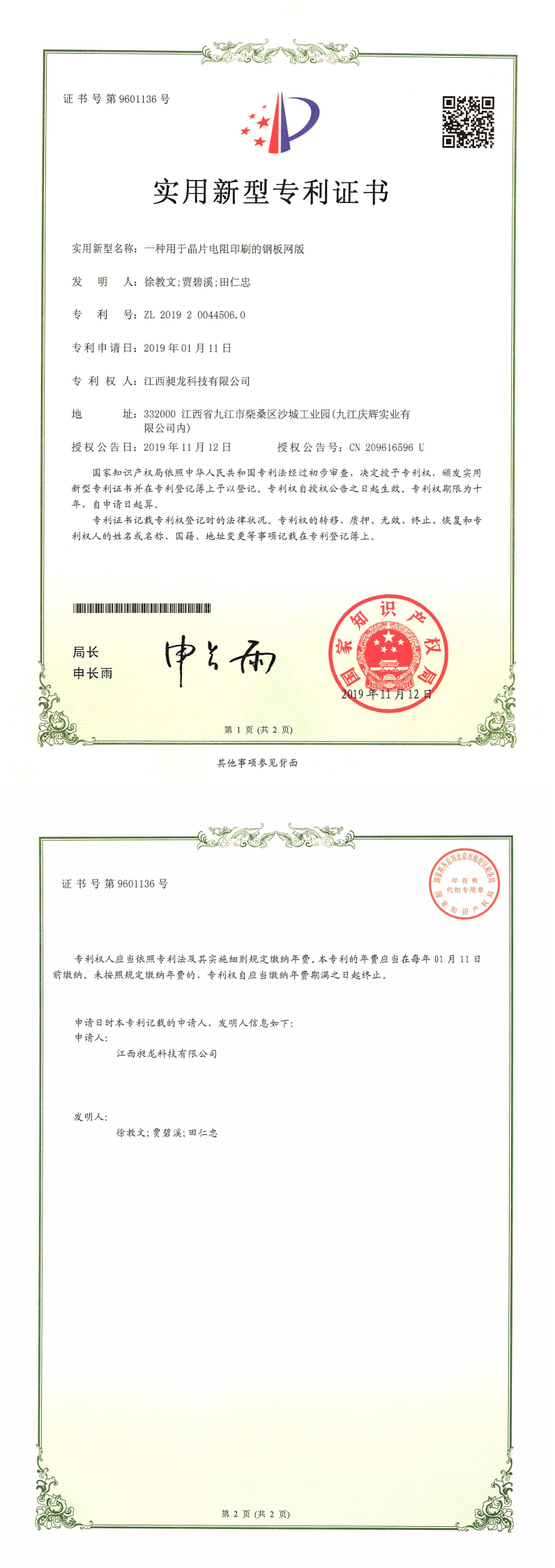 其他专利证书
